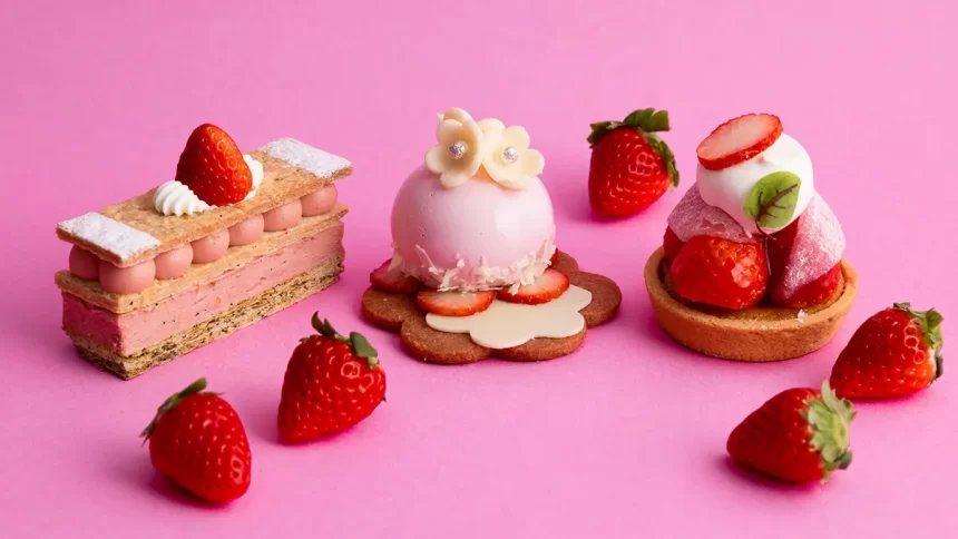 いちごのミルフィーユやムース、いちごタルトをご用意しました。ピンクを基調としたスイーツは、見ても食べても心が躍る美しさと美味しさです♪