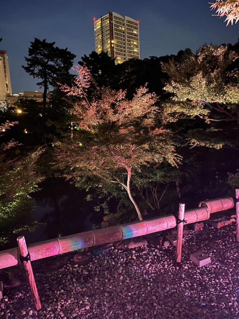 夕方から始まったお稽古が終わって外に出ると日も落ち、幻想的な明かりに照らされた日本庭園が♡♡♡