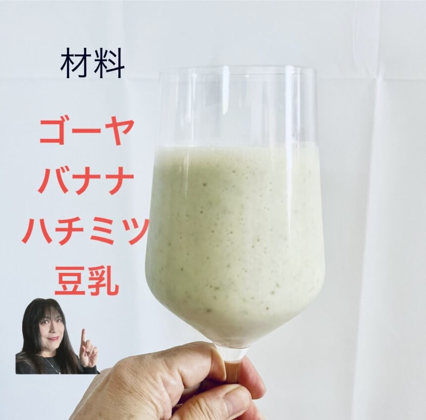 材料はゴーヤ・バナナ・ハチミツ・豆乳(牛乳でも可)のみ^^