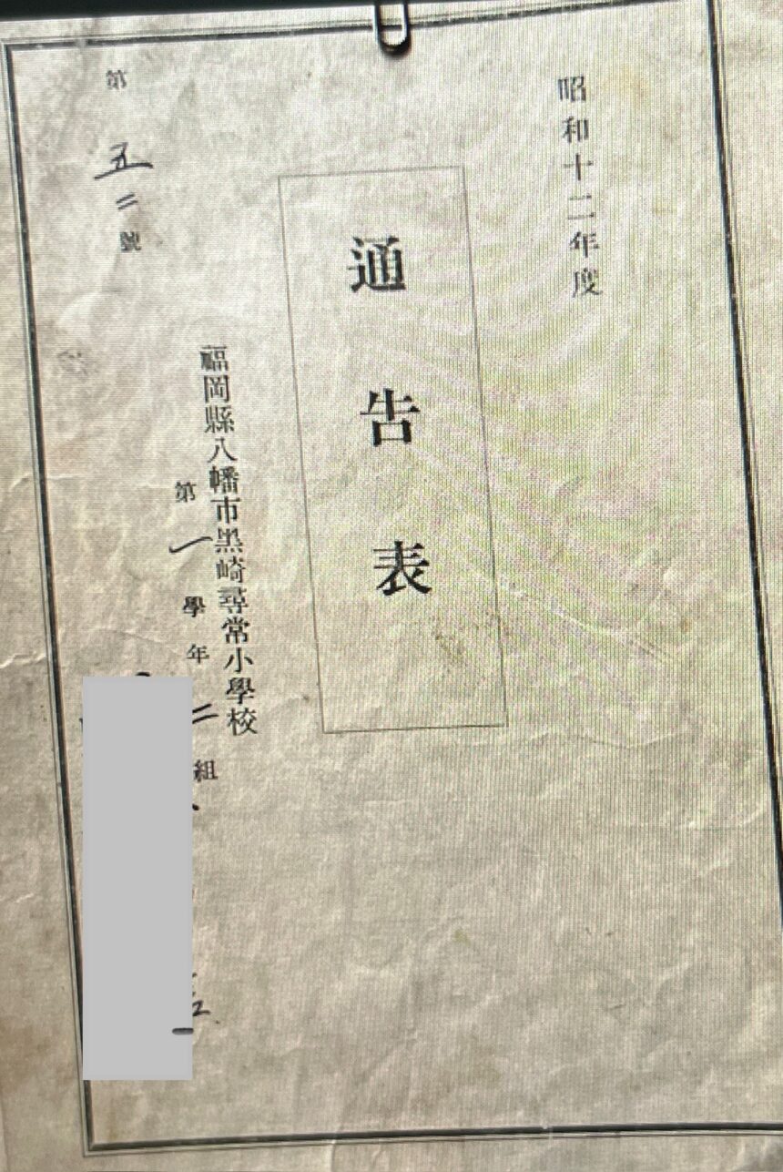 昭和十二年度(88年前だ💦) 通告表(通信簿でも通知表でも、あゆみでもない💦)福岡縣(県じゃない💦)八幡市(区じゃない💦)黒崎尋常小学校(黒崎小学校じゃない💦)