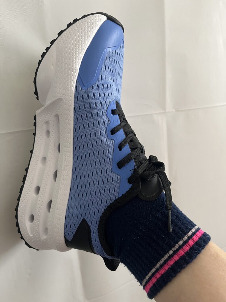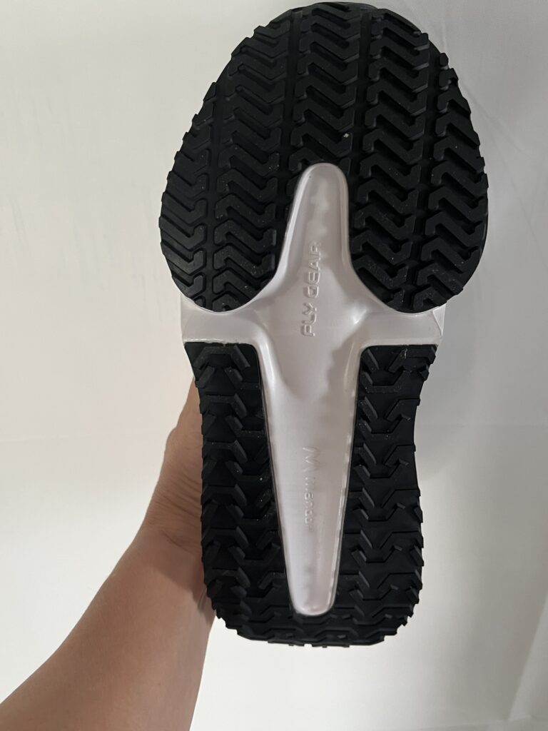 厚底ランニングシューズというだけあって、かなりの厚み、穴が開いて向こうが見えた~👟