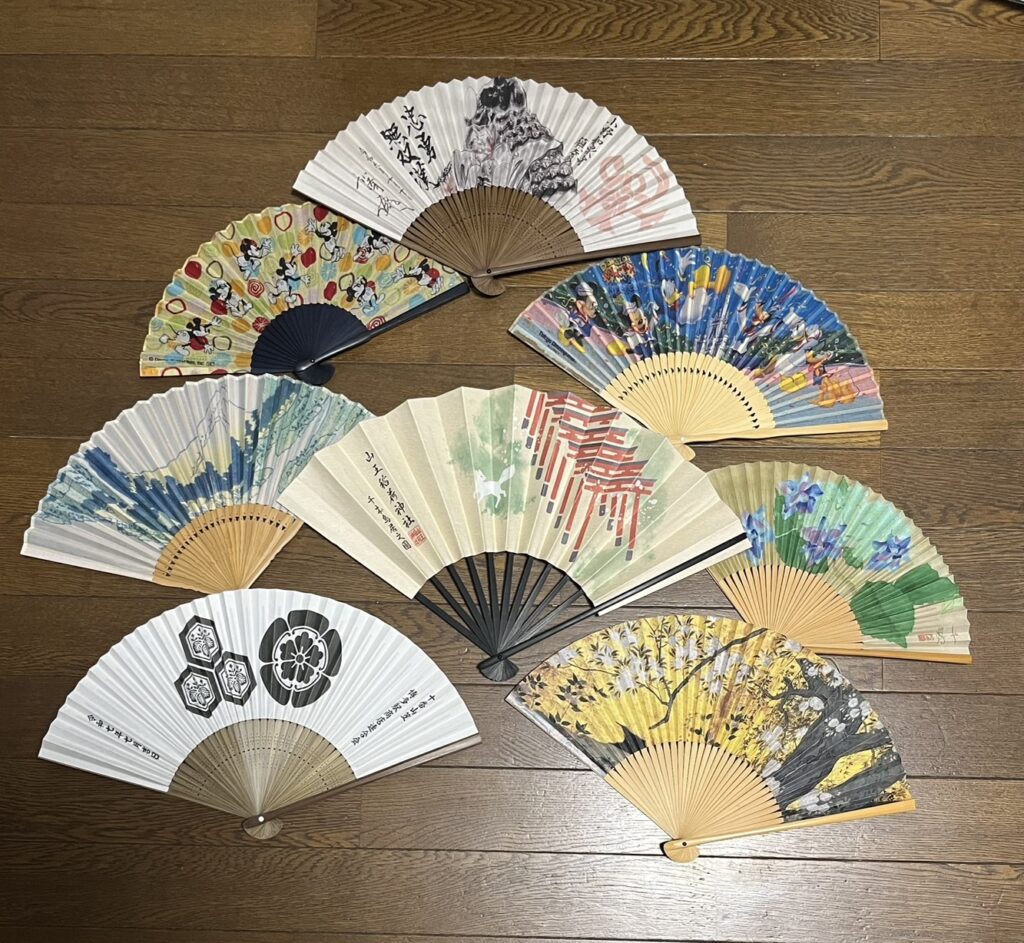 私が持ち歩くのは軽くてコンパクトな「扇子」👍 自分で購入したもの、頂いたものなど こんなにあった・・・まだどこかにもあると思う~~~💦