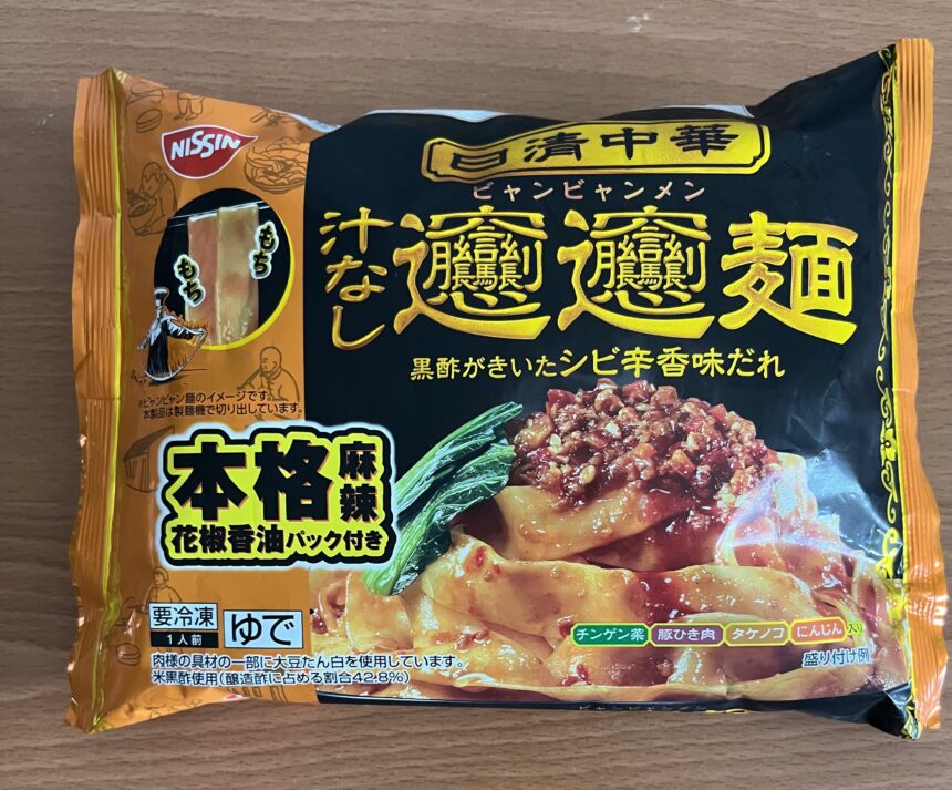 日清中華「汁なしビャンビャン麺」(ちゃんと画数の多い漢字で書いてあるけれどパソコンで出てこないので・・・)