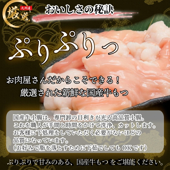 - 国産の牛もつを使っていて、ぷりぷりでジューシー。内臓特有の強いクセも抑えられていて、「初めてでも食べやすい」と言われることが多い