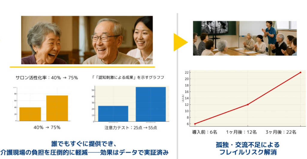 デイサービス、特養、グループホーム、自治体の「通いの場」などで活用可能