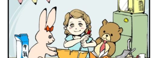 ① 旗の黒い部分の量② ウサギの耳の黒い部分の量③ 女の子の髪留め④ スプーンの位置⑤ 冷蔵庫のマグネット⑥ 電子レンジの脚⑦ 牛乳の青い部分