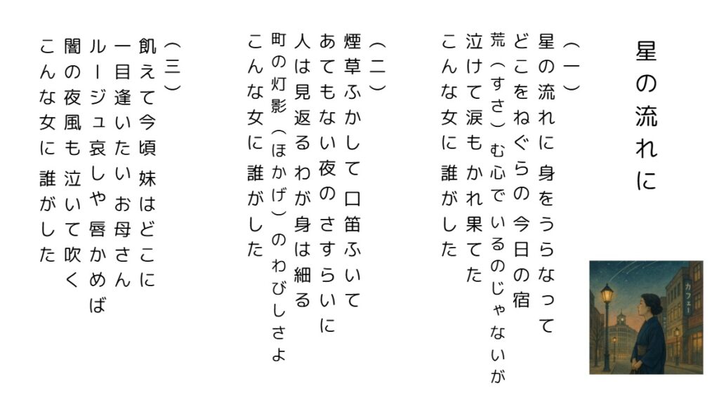 星の流れにを歌おう 歌って脳トレ おとなナビ, シニア, フレイル予防, 星の流れに, 歌って脳トレ, 笑福, 簡単だから続く, 脳トレ, 認知症 お座敷小唄を歌おう 東京五輪音頭を歌おう 関連記事 otonanavi 歌って脳トレ 高校三年生 otonanavi 世界の国からこんにちわを歌おう! otonanavi 三六五歩のマーチを歌って歩こう otonanavi フレイル予防 歌って脳トレ「明日があるさ」 坂本九 otonanavi 誰か故郷を想わざるを歌おう otonanavi 銀座カンカン娘を歌おう