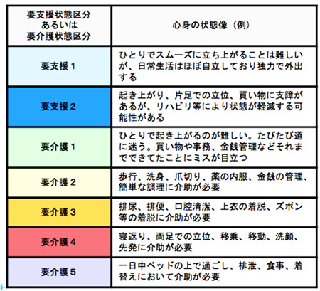 ■ 自立〜要介護5の区別一覧表