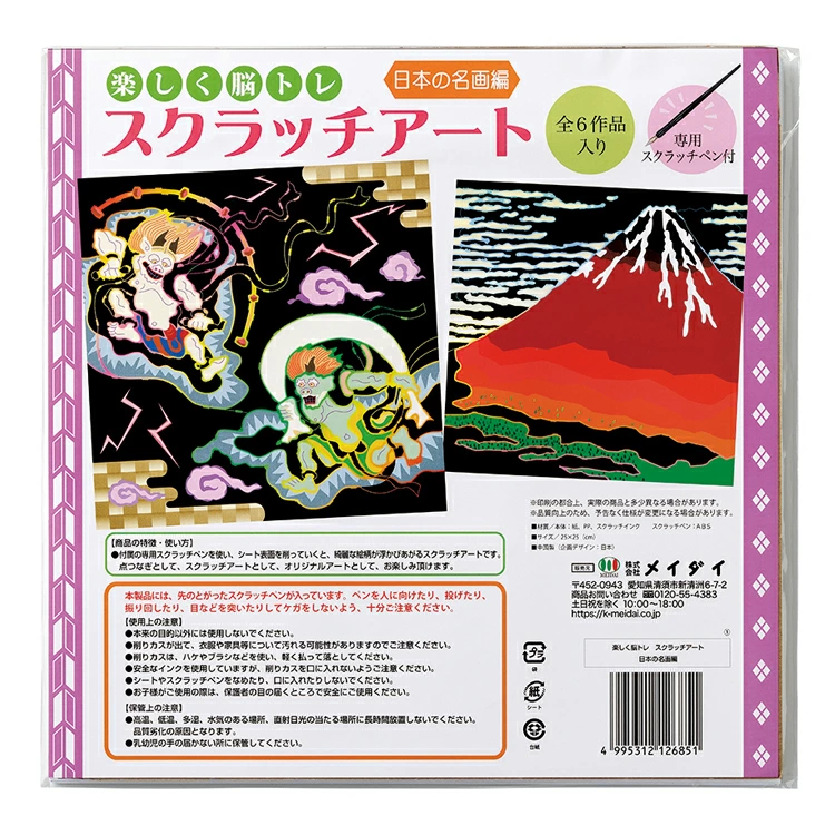 黒い面を削ると美しい色や絵柄が浮かび上がるため、達成感と視覚的な喜びが大きいのが特徴のスクラッチアートを脳トレに!