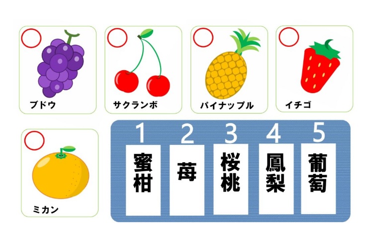 漢字クイズ 〇に当てはまる果物の漢字の番号を入れてください