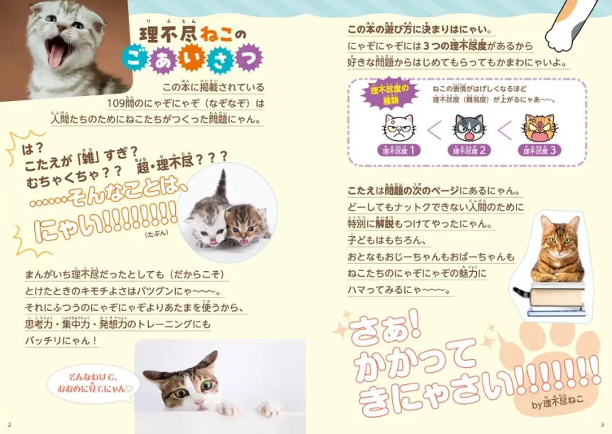 超刺激的な109問!『ねこがつくった理不尽なぞなぞ』思考力、集中力、発想力UP! 脳トレにもピッタリです。