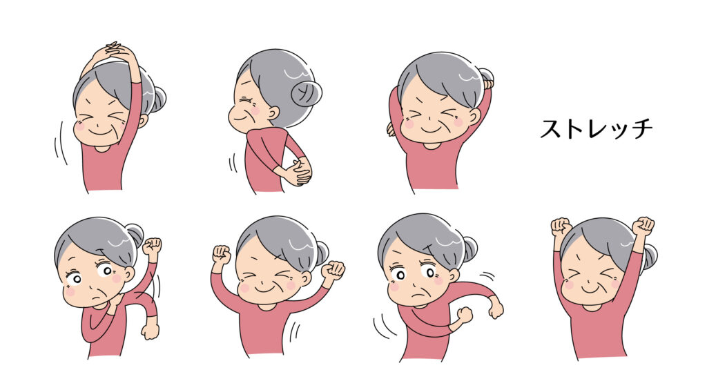 ゆっくりと腕を回す体操やストレッチをお願いします
